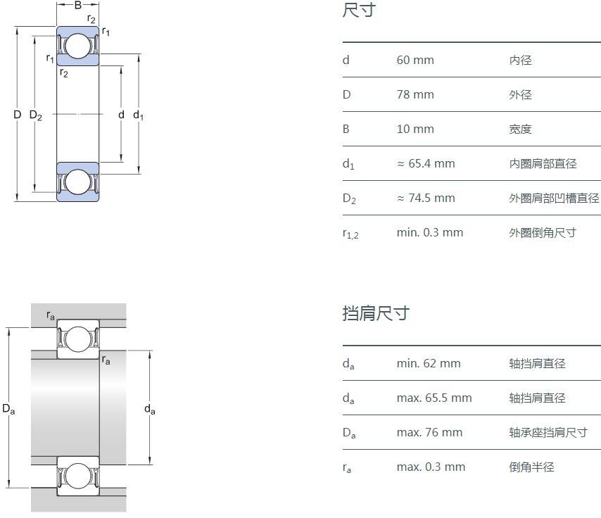 SIAIF不銹鋼深溝球軸承 S6215-2Z 詳細參數
