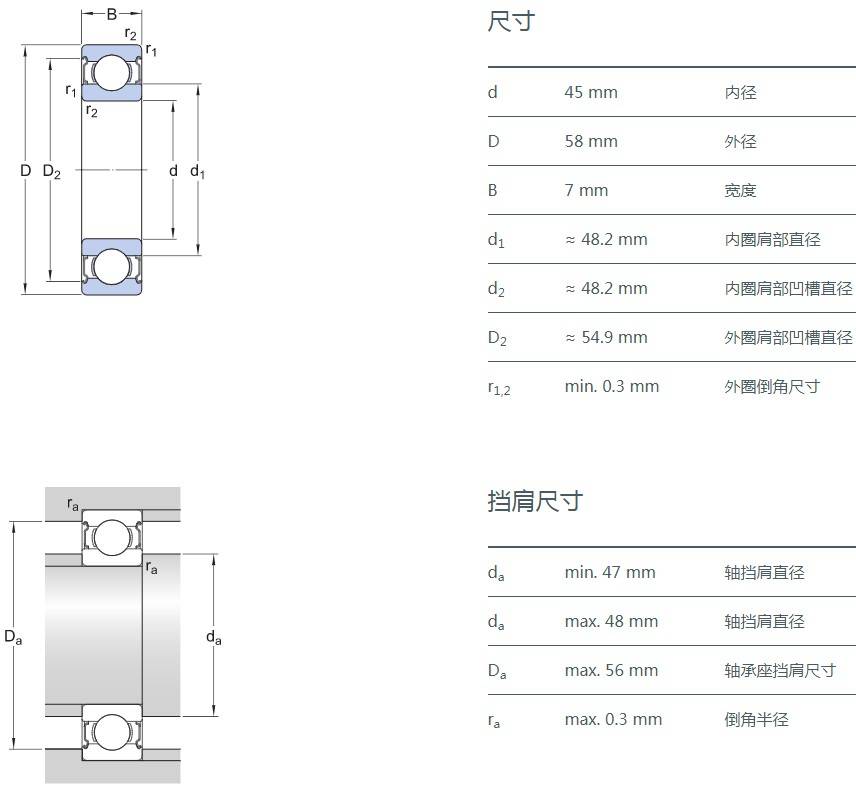 SIAIF不銹鋼深溝球軸承 S61809-2Z 詳細參數(shù)