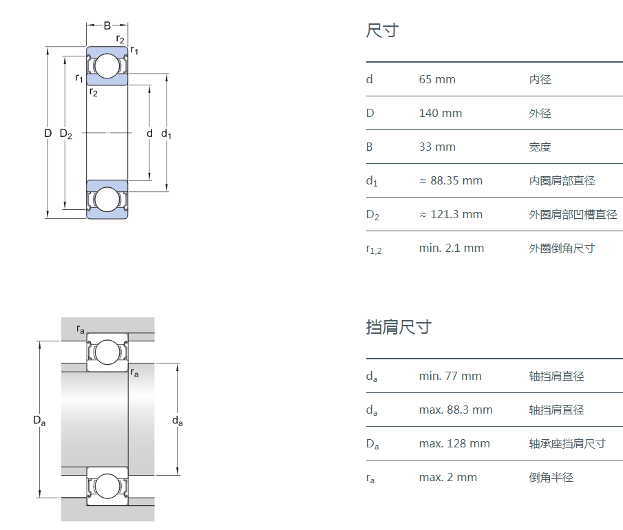 SIAIF不銹鋼深溝球軸承 S6313-2Z 詳細(xì)參數(shù)