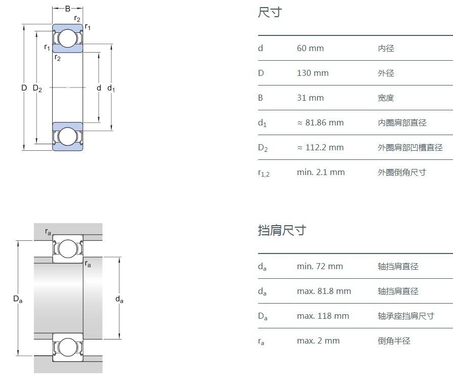 SIAIF不銹鋼深溝球軸承 S6312-2Z 詳細參數(shù)