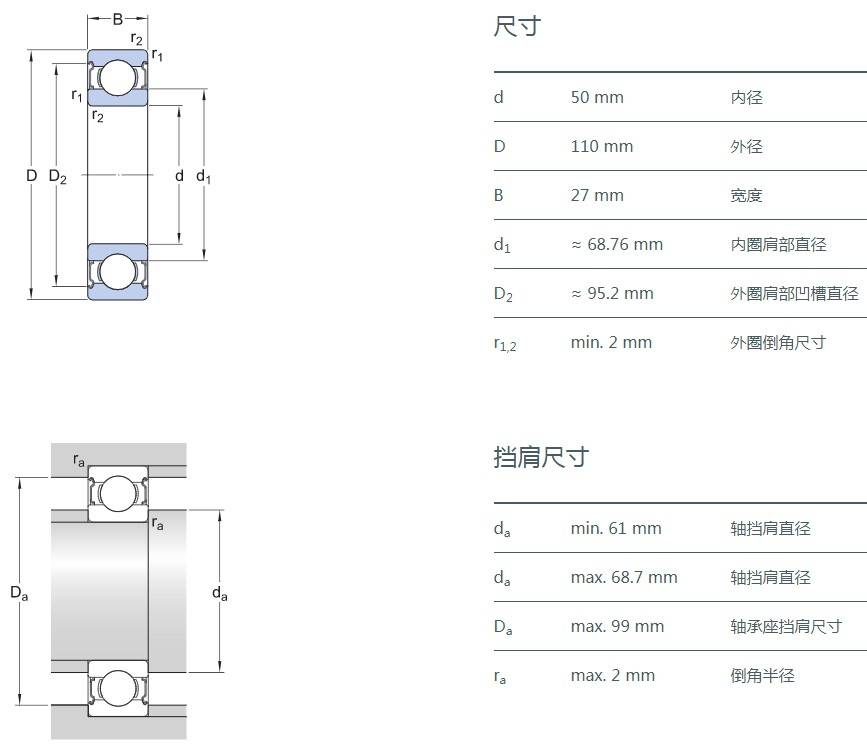 SIAIF不銹鋼深溝球軸承 S6310-2Z 詳細(xì)參數(shù)