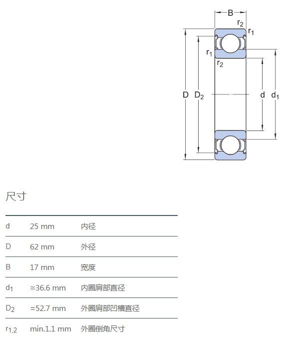 SIAIF不銹鋼深溝球軸承 S6305-2Z 詳細參數(shù)