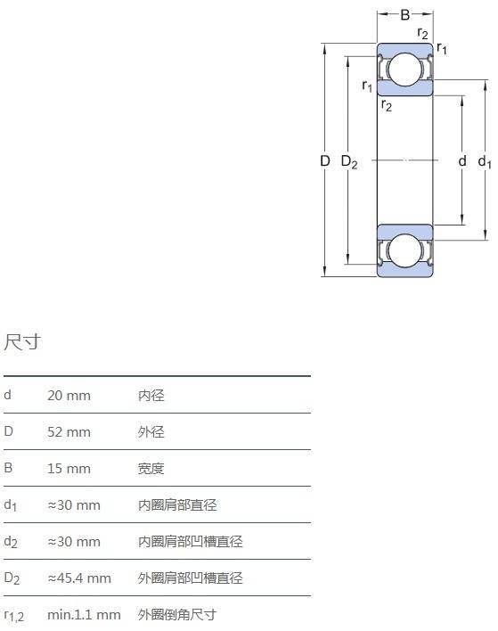 SIAIF不銹鋼深溝球軸承 S6304-2Z 詳細參數(shù)