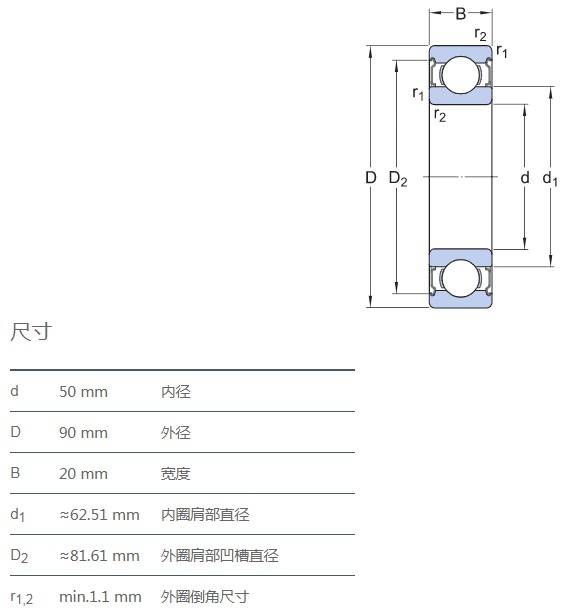SIAIF不銹鋼深溝球軸承 S6210-2Z 詳細(xì)參數(shù)