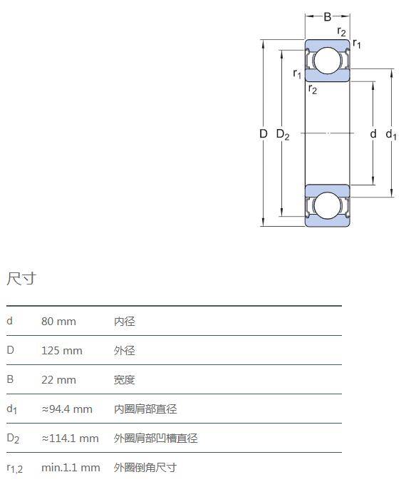 SIAIF不銹鋼深溝球軸承 S6016-2Z 詳細(xì)參數(shù)