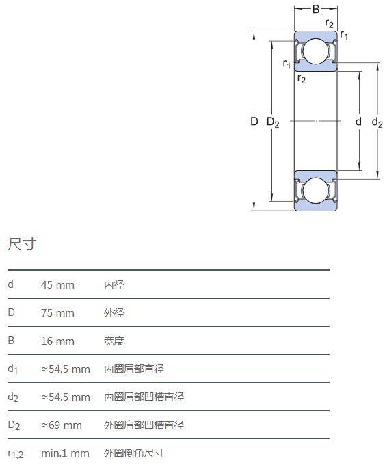 SIAIF不銹鋼深溝球軸承 S6009-2Z 詳細參數(shù)