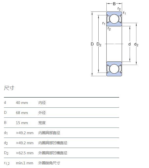 SIAIF不銹鋼深溝球軸承 S6008-2Z 詳細參數(shù)