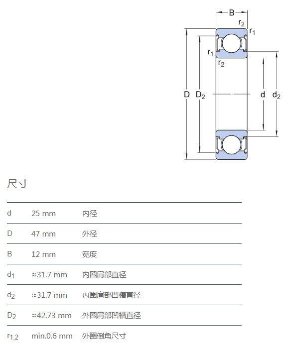 SIAIF不銹鋼深溝球軸承 S6005-2Z 詳細參數(shù)