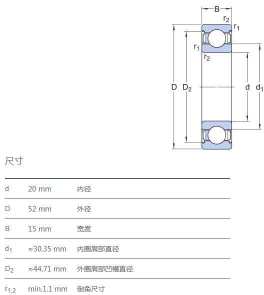 SIAIF耐高溫石墨自潤滑軸承 6304-2Z/VA201 詳細(xì)參數(shù)