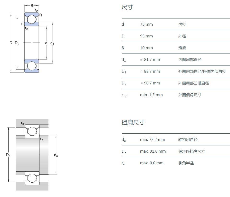 SIAIF不銹鋼深溝球軸承 S61815-2Z 詳細(xì)參數(shù)